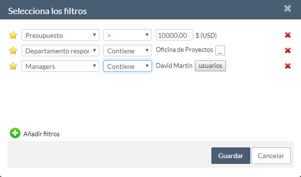 - Los estados por los que un proyecto puede pasar. Por ejemplo, podemos definir que los proyectos cuyo estado es “en borrador” sólo puedan cambiar a los estados “iniciado” o “descartado”.